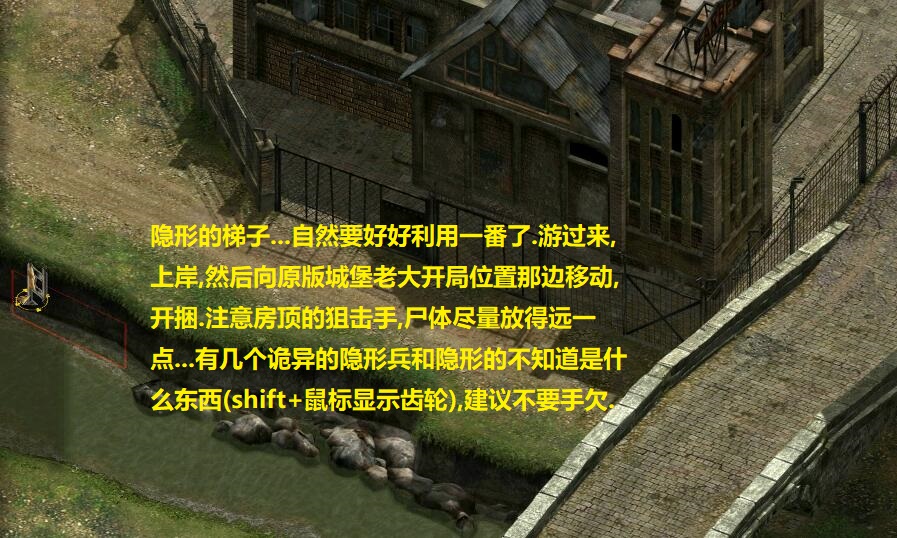 几点说明:- X16这关主要的难度在于找到合适的路线,所以,按照惯例,攻略做的比较简略...大概流程:开局-拿士兵衣服-找MJ-找老三-拿酒-拿钩子-进城堡捆几个狙击手,扫清过桥的障碍-出城堡,拿军官衣服+通行证+钥匙-再次进城堡,发报召唤老大(在此之前要处理掉所有的高射炮手)-清理剩下的敌人(老大出场后就没有什么难度了).这关要求熟悉地图,因为单向门和需要钥匙的门太多,如果地图不熟很容易迷路或者漏人.钩子和梯子如果能带在身上,尽量一直带着.(回收梯子和钩子的时候,注意背包是否有空间)